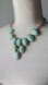 Mint Green Vintage Bib Statement Necklace Chunky Bold Gold Tone Oval Plastic Cabochon