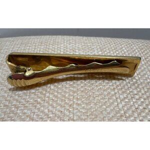 This vintage tie clip features a gold tone and a striking mother of pearl inlay, offering a sophisticated touch to formal attire. A classic accessory for the discerning gentleman.