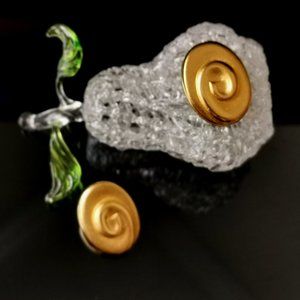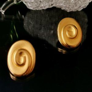 Vintage Gold Tone Oval Shape Pierced Earrings