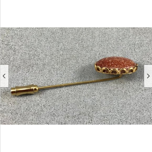 Vintage Gold Tone Sunstone Stick Lapel Scarf Tie Pin Brooch