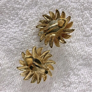 Vintage Gold Tone W White Gems Sun Shaped Clip On Earrings