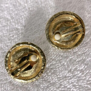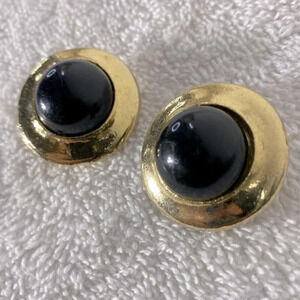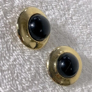 Vintage Gold Tone With Black Centre Round Clip On Earrings