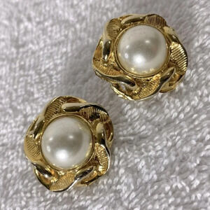 Vintage Gold Tone With Faux Pearl Centre Clip On Earrings