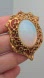Vintage gold tone with moonstone-style glass cabochon and aurora borealis rhinestone brooch.