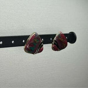 Vintage Gold Tone and Purple/Green Enamel Stud Earrings. Circa 1980s.