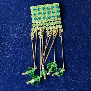 Vintage Gold tone & Green Rhinestone Jewelry Set-Brooch, Necklace & Earrings