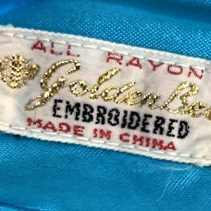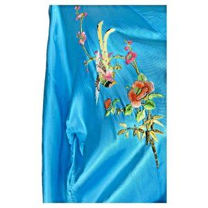 Vintage Golden Bee Turquoise Blue Embroidered Robe Kimono