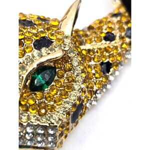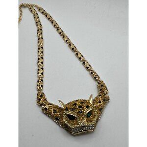Stunning Leopard Necklace and Earrings set. With gold and white rhinestones and emerald green stones for the eyes. Necklace is 20 inches and earrings are 1 inch studs. An unsigned beauty indeed. Rare design. simply gorgeous.