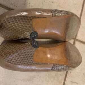 Vintage, Golden Plume, Narrow, AA, Kitten Heel, Cone Heel, Funnel Heel, Pointed Toe, Leather, Snake Print, Python Print, Reptile, Cap Toe, Two-Tone, Neutral, Tan, Beige, 80s, 90s, Classic, Career.