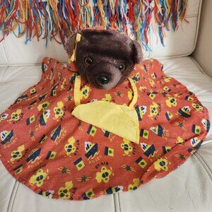 It measures 11 inches tall from the top of the head to bottom of the dress.