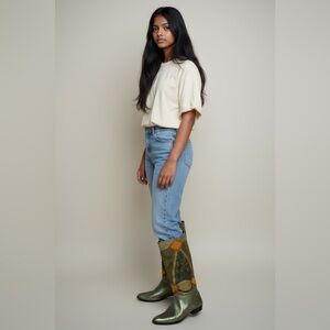 Vintage Gomez Rivas Boots Olive Green Leather,Suede,Snakeskin
