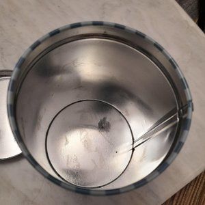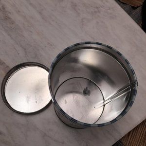 Good Housekeeping Vtg Metal Tin Container w Lid Sewing magazine cover April 1928. 6 inch diameter.