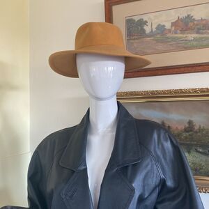 Vintage Goorin Bros. wide brim fedora hat 100% merino wool felt. Mustard yellow. Not familiar with this particular model so I don’t know if there’s a textile or leather band missing.