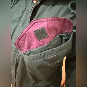 Vintage premium quality goose down by Eddie Bauer. Made in Seattle USA. Women’s size small. Hood comes with fur trim, hood is removable by zipper. Hand pockets have zipper to close. Pocket inside of jacket. Velcro pocket on the left side of chest. This jacket is in excellent condition. Zipper and Velcro to clothes jacket. Jacket can be adjusted to cinch fit.