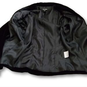 This Jacket is in Excellent Condition! There is no Visible Wear. Looks Barely Worn. The trim is Black and the Lining is Black, however due to the Deep Blackness of the Velvet, the camera picks them up with contrast, but they are definitely black.