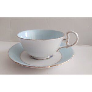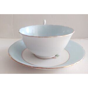Vintage Grafton England Wide Mouth Tea Cup & Saucer set Blue & Floral 1950's