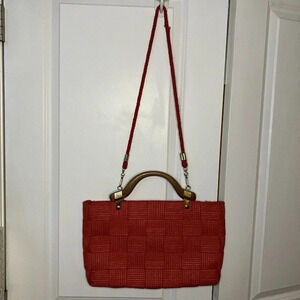 Vintage Grande Moda Tiffany Made in Italy Orange Red Woven Bag