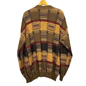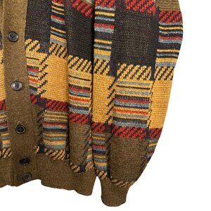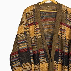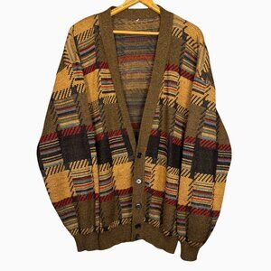 Vintage Grandpa Cardigan XL Retro Earth Tone Knit Sweater Acrylic