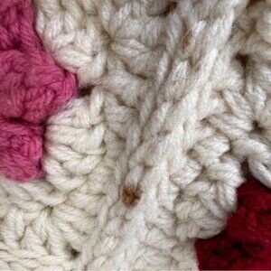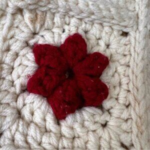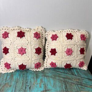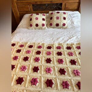 Vintage Granny Square 3D Floral Throw Afgh Knit Blanket with 2 Matching Pillows