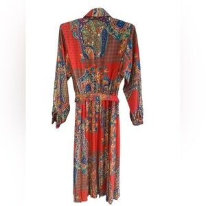 Vintage Graphic Paisley/Floral Pleated Shirt Dress