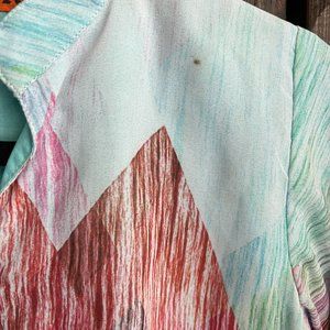 Beautiful linen lining and graphic art print on the front back and sleeves