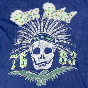 Vintage Graphic T-Shirt | Y2K Blue 'Rock The Casbah' Studded Large Front Graphic
