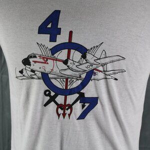Up for sale is a vintage graphic t-shirt. It is a ringer T-shirt with a white base colour and blue trim. The front of the shirt has the 47 Demon Squadron logo screened on the front. What a great vintage shirt do not miss out on it.