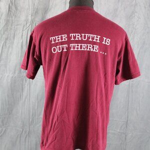 Up for sale is a vintage graphic t-shirt. It has a maroon base colour with a graphic of an alien eating a mars bar on the front. The back of the shirt has the truth is out there screened from shoulder to shoulder. What a great vintage shirt do not miss out on it.