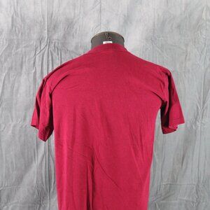 Up for sale is a vintage graphic t-shirt. It has a maroon base colour with the Canadian paratrooper logo screened on the chest. What a great vintage shirt, do not miss out on it.