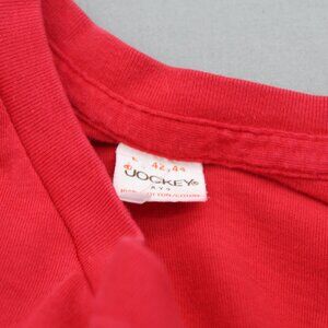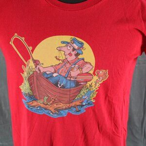 Up for sale is a vintage graphic t-shirt. It has a red base colour with an iron on graphic of a fisherman in a boat on the chest. What a great shirt do not miss out on it.