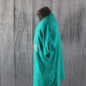 Up for sale is a vintage graphic t-shirt. It has a green base colour with a puffer graphic screned on the front. The graphic has logging sports on the bottom with 2 men in a log rolling competition above. What a great vintage shirt do not miss out on it.