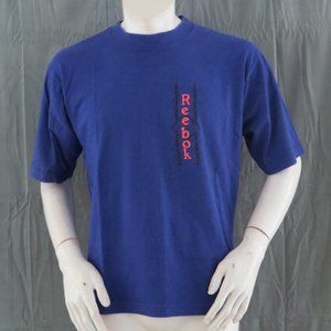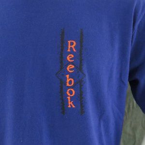 Up for sale is a vintage Reebok shirt. This shirt dates from the late 1980s and was Reebok's attempt at making extreme sport clothing. This shirt is their surfing shirt. The base colour of the shirt is a neon blue/purple combo colour. The front of the shirt has Reebok in neon orange with a surf waves on either side. The back of the shirt contains a simply amazing graphic of a surfer riding which makes up the entire bottom half of the shirt. The waves are made up of neon orange and blues. What an amazing vintage shirt do not miss out on it.