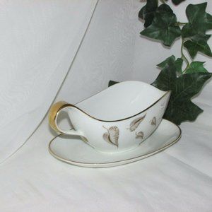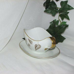Vintage Gravy Boat Heinrich Bavaria Golden Leaves China or Fine Porcelain