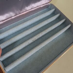 Stylish gray jewelry box with a lovely floral pattern. Ideal for organizing your jewelry. Brings a touch of elegance.