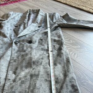 Elevate your style with this sophisticated gray double-breasted coat. Perfect for any occasion, this coat offers a timeless look and comfortable fit.