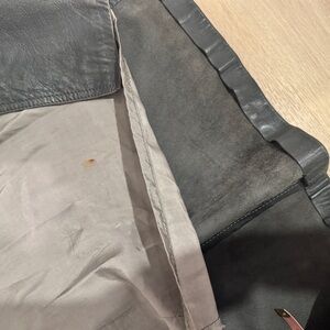 Great vintage condition, super soft buttery leather. Only some discolouration on bottom trim - as seen in pictures. Easily fixed with matching spot leather dye. A few small stains on inner lining (pictured) but no impact to look of the coat.