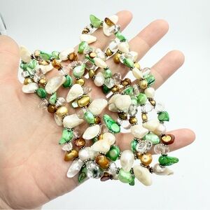 Vintage Green Abalone Shell Beaded Multi Strand Necklace