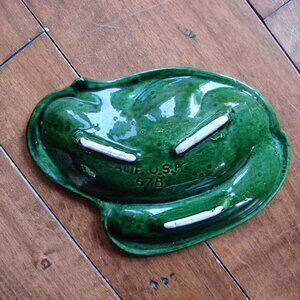 Vintage Green Ashtray California Pottery Ceramic Footed Trinket Jewellery Tray