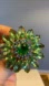 Stunning green crystal rhinestone flower brooch with intricate detailing. Perfect for adding a touch of elegance.