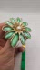 Vintage Green Enamel Flower Brooch with Pearl Center