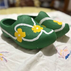 Vintage Green Floral Painted Clogs