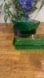 A pair of vintage green glass rectangular trinket dishes featuring a diamond point pattern on the base and vertical ribbed sides. These versatile dishes are ideal for candy, nuts, vanity use, or as elegant accent décor. Their vibrant emerald green colour makes them a standout addition to any glassware or mid-century collection.