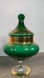Vintage Green & Gold Gilded Pedestal Glass Candy Dish with Lid