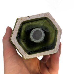Beautiful set of 2 vintage green canisters made in Japan! These canisters are great for the kitchen or washroom. They have a lovely filigree pattern and are in excellent condition with no chips or cracks! Please note that only the large canister has a lid but the small one has a little hole with a cap on the bottom.