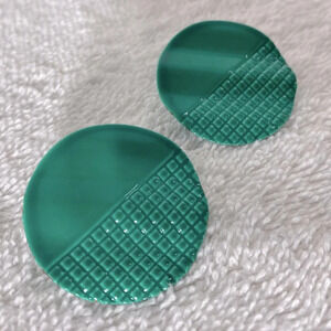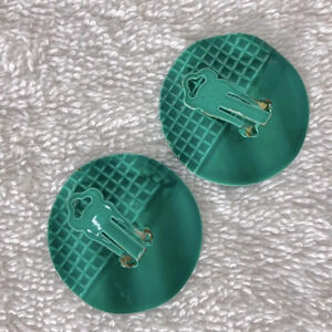 Vintage Green Painted Textured Metal Round Clip On Earrings