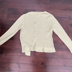 Elegant sage green cardigan with ribbed texture. Features a button-up front and V-neckline.