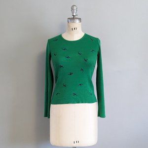 Vintage Green and Navy Blue Embroidered Whale Novelty Crew Neck Sweater Small