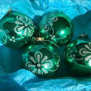 Vintage Green embossed Ornaments