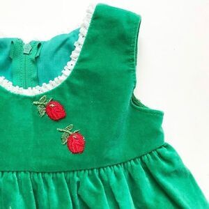 Vintage Green velvet strawberry dress EUC fits like 3-6 months