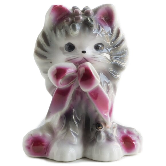 Vintage Grey & Pink Cat Figurine